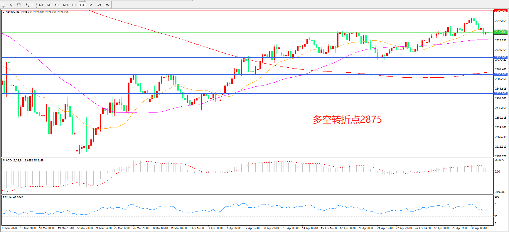 多空转折点:2875.00