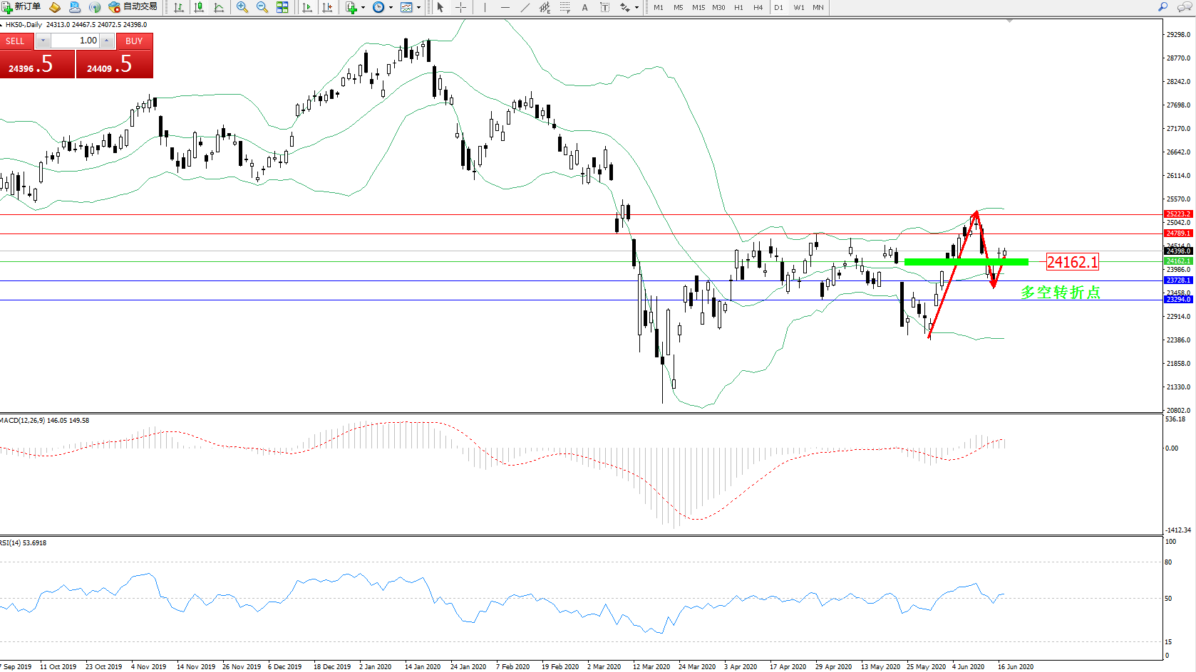 恒指HK50 ——日K线图显示: