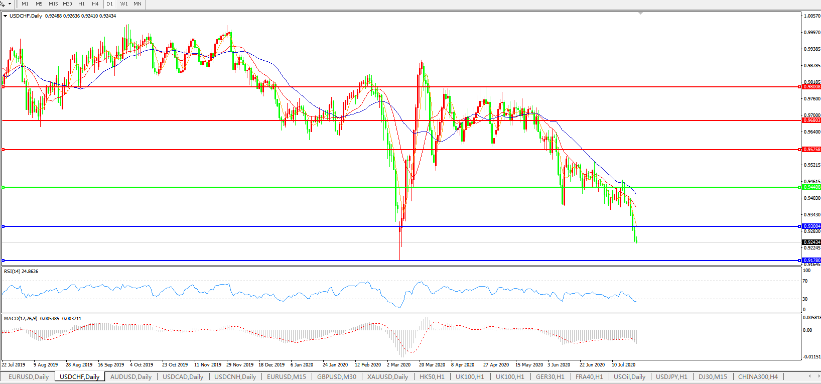 美元兑瑞郎USDCHF 日线图: