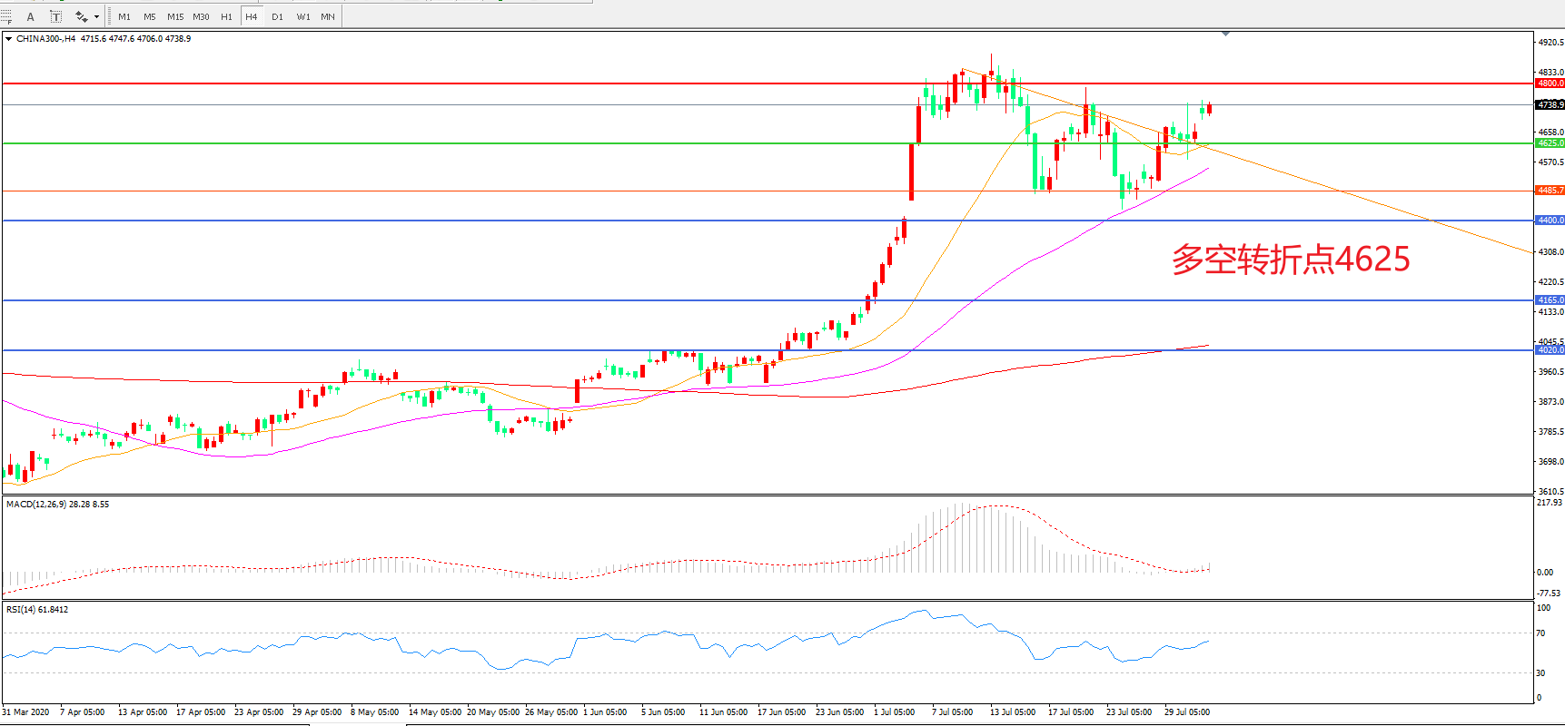 多空转折点:4625.00