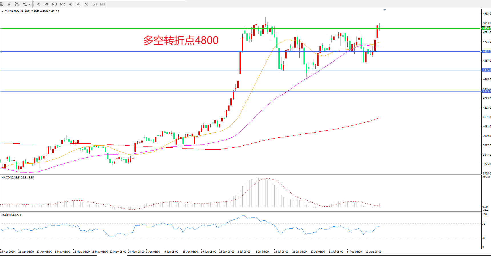 多空转折点:4800.00