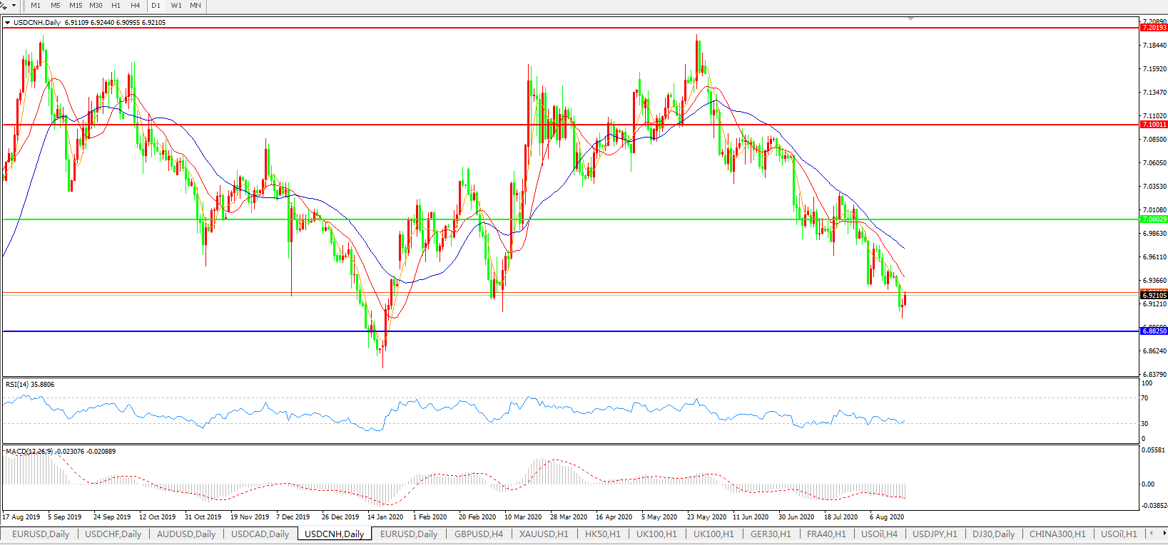 美元兑人民币USDCNH    日线图: