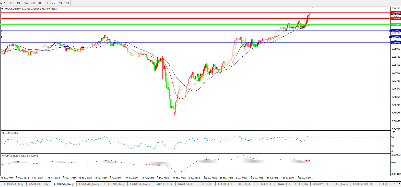 澳元兑美元AUDUSD 日线图:
