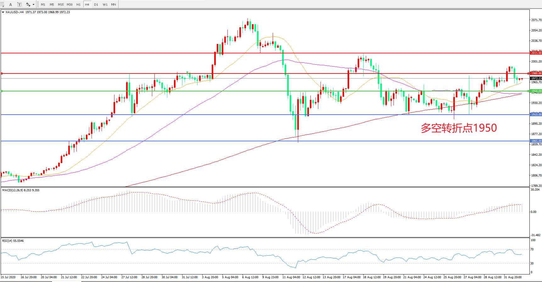 多空转折点:1950.00