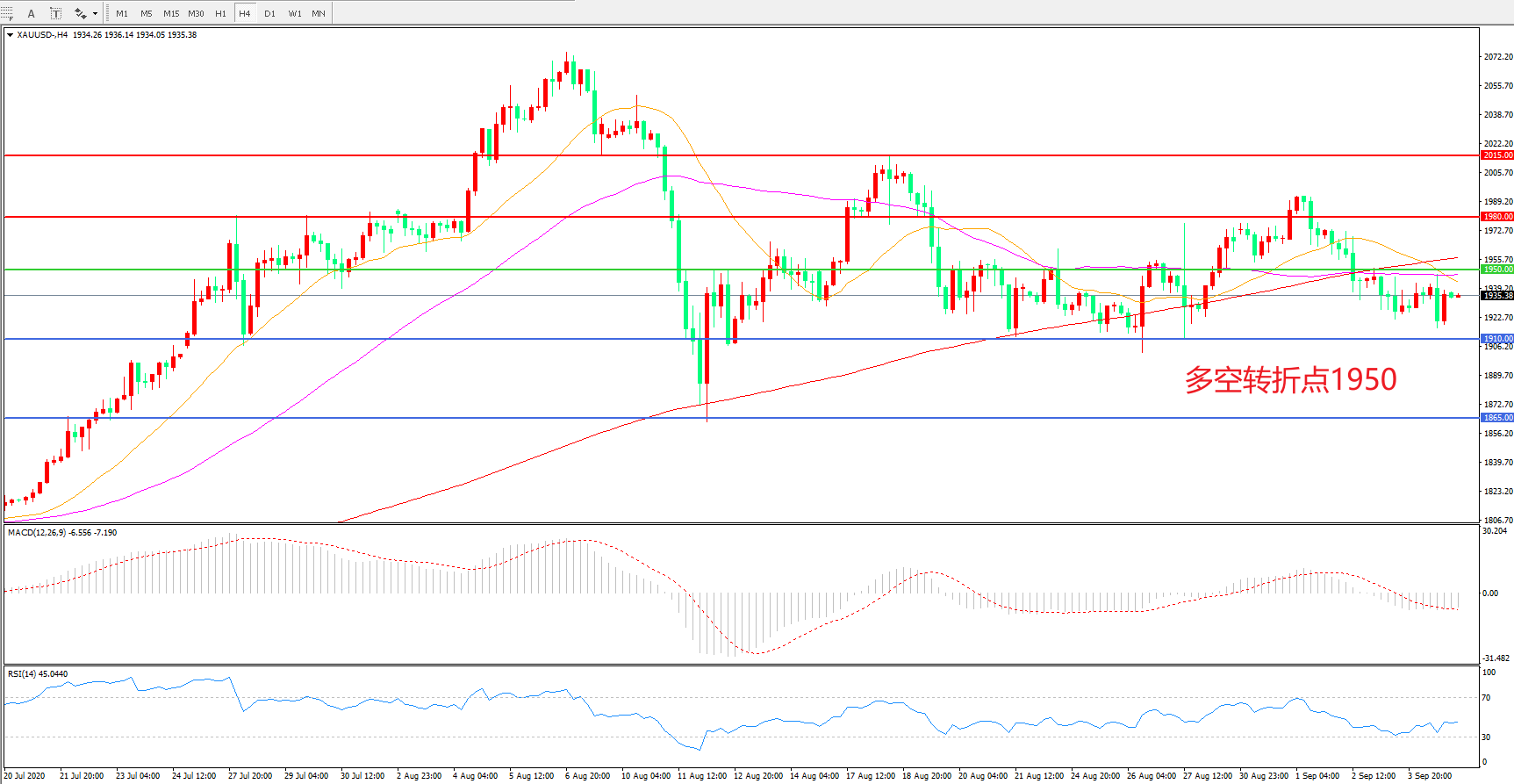 多空转折点:1950.00