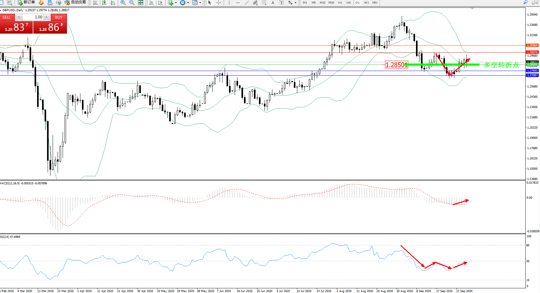 多空转折点:1.28501