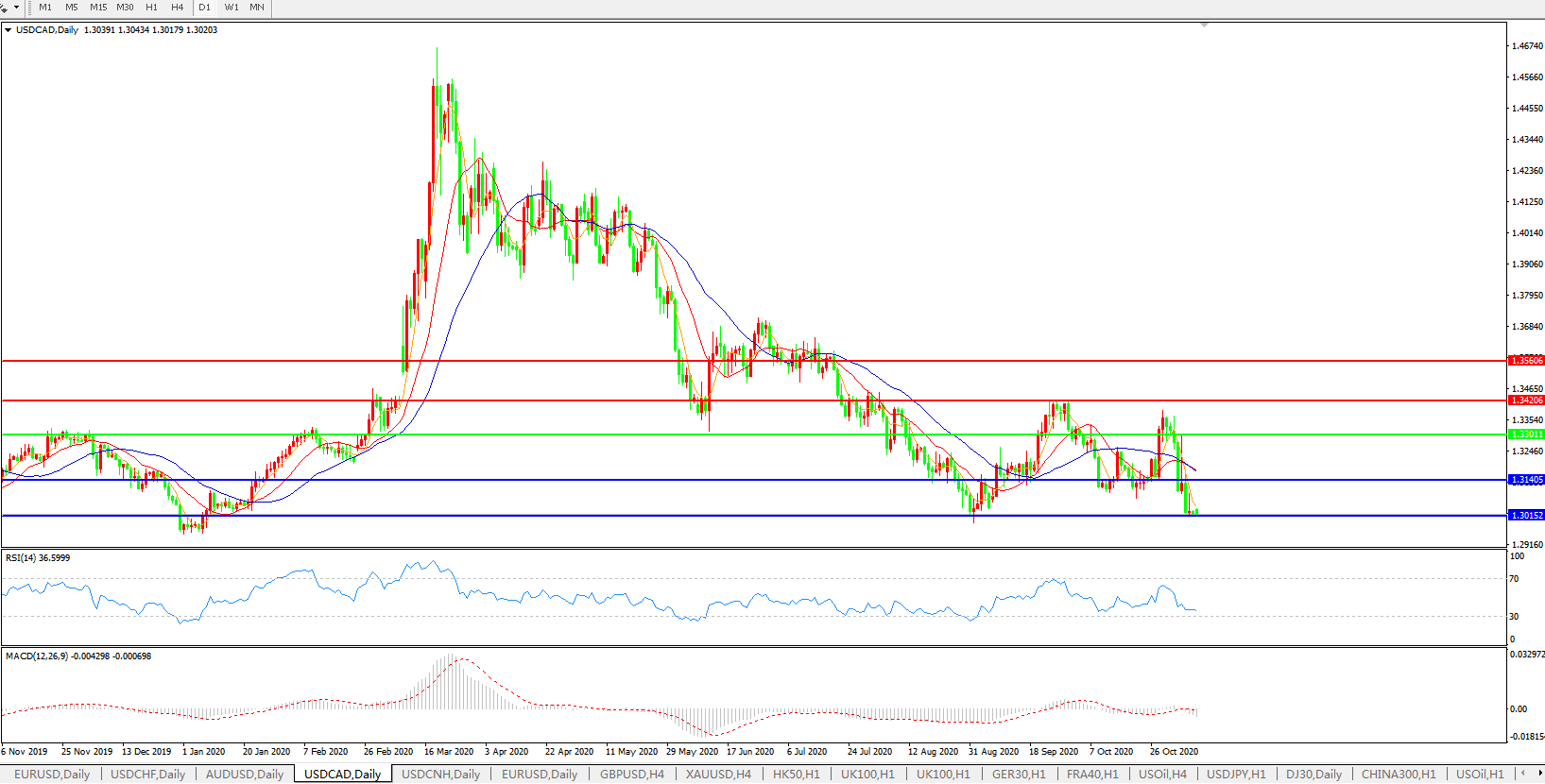 美元兑加元USDCAD    日线图: