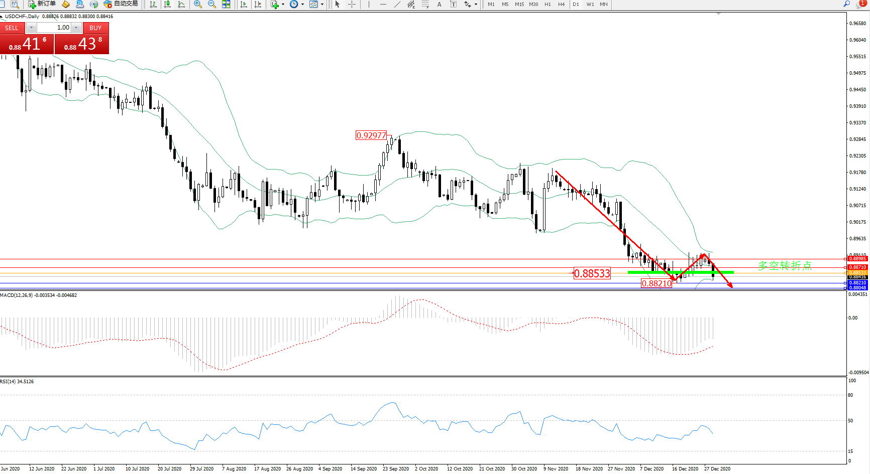 美元瑞郎USDCHF——日K线图显示:
