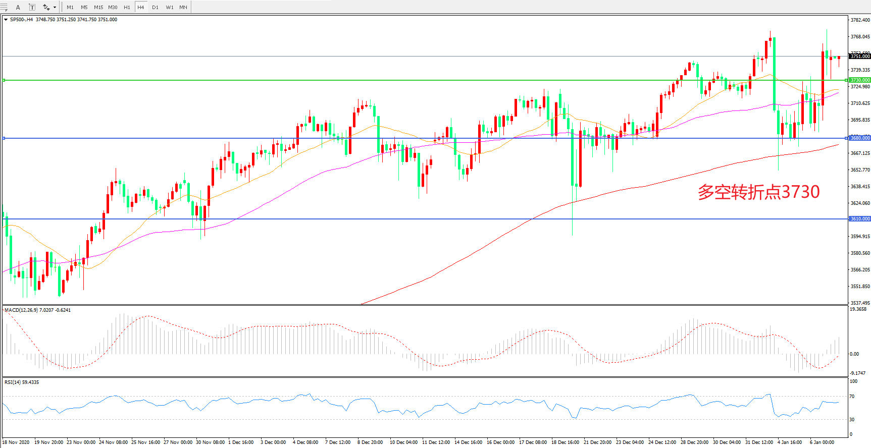 多空转折点:3730.00