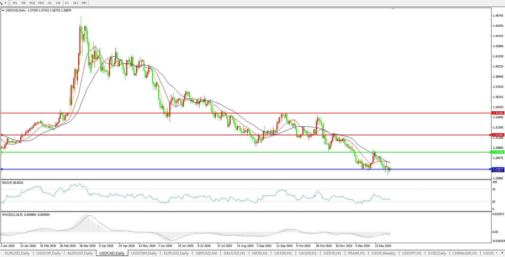 美元兑加元USDCAD 日线图: