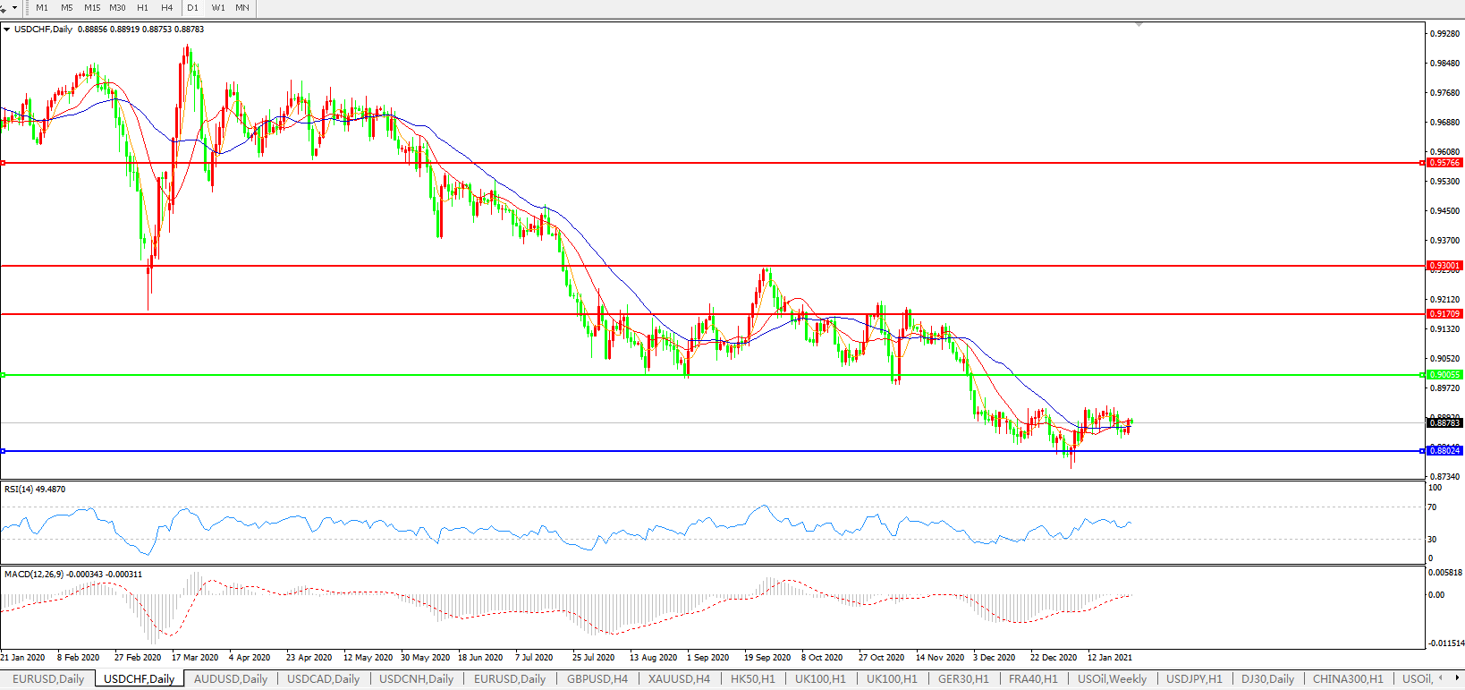 美元兑瑞郎USDCHF    日线图: