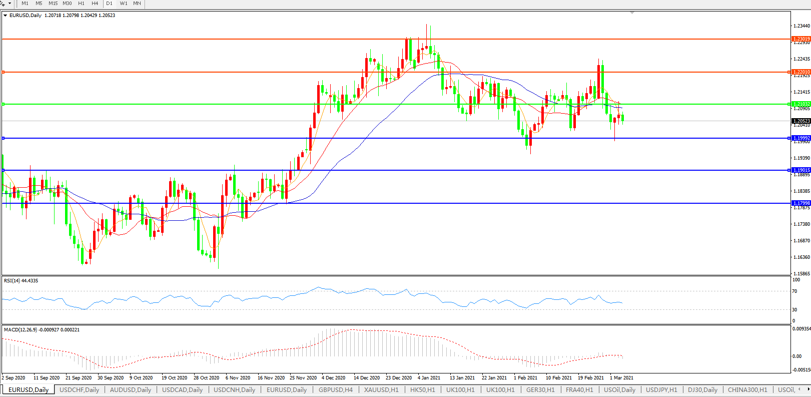 欧元兑美元EURUSD   日线图: