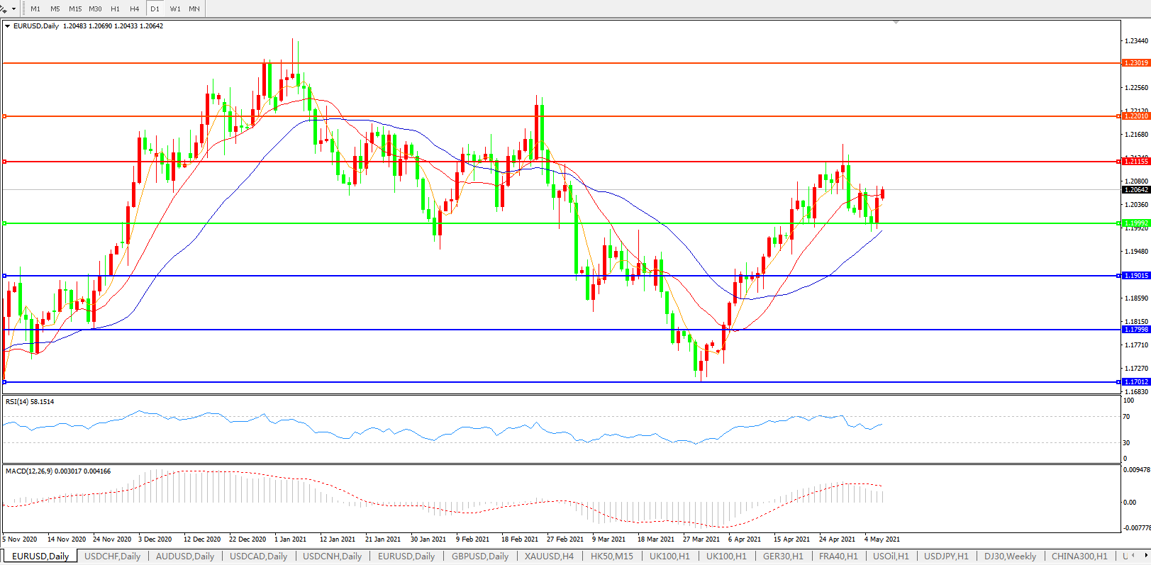备选策略:1.2000下方看跌,目标1.1900、1.1800