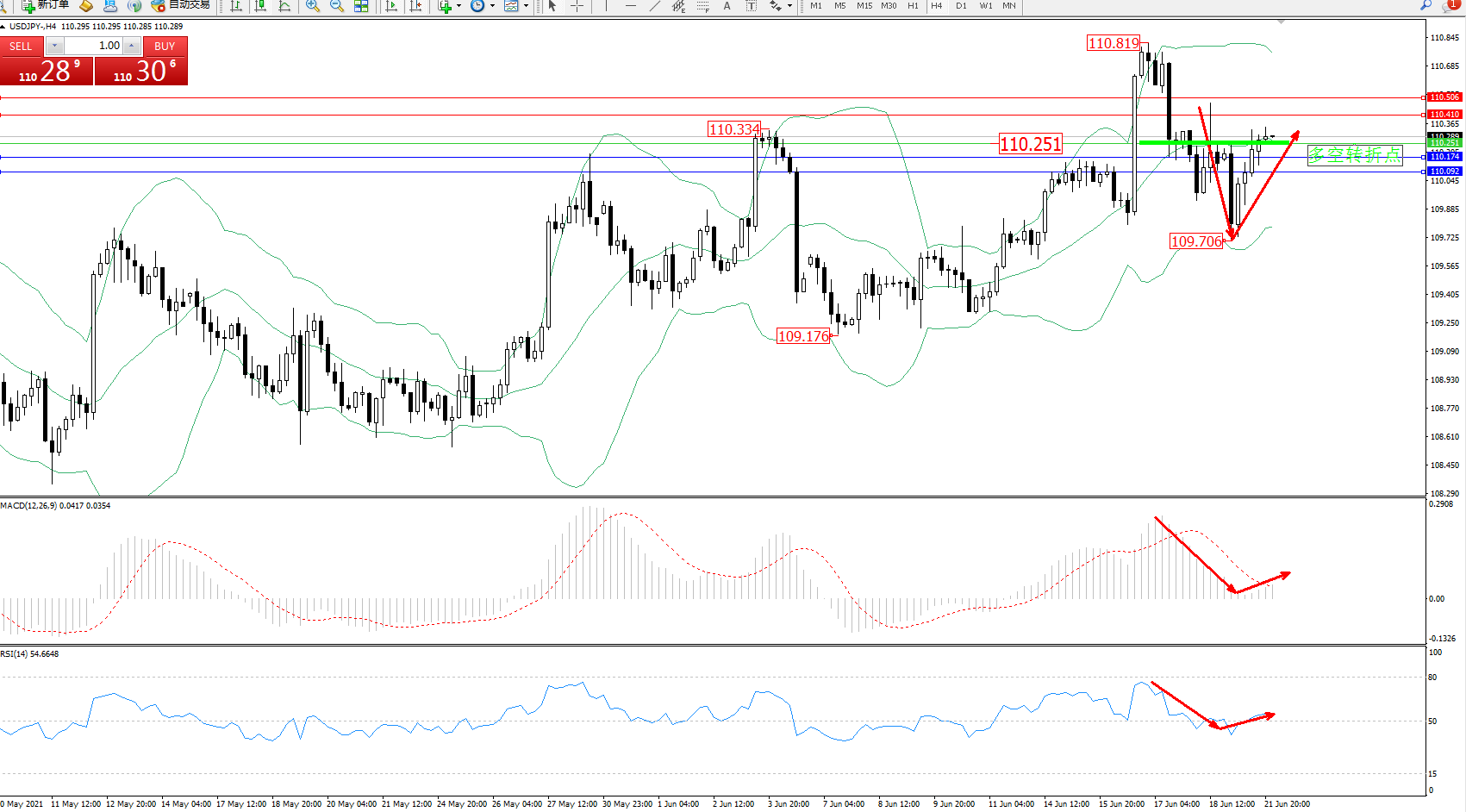 备选策略:110.251下方看跌,目标110.174、110.092