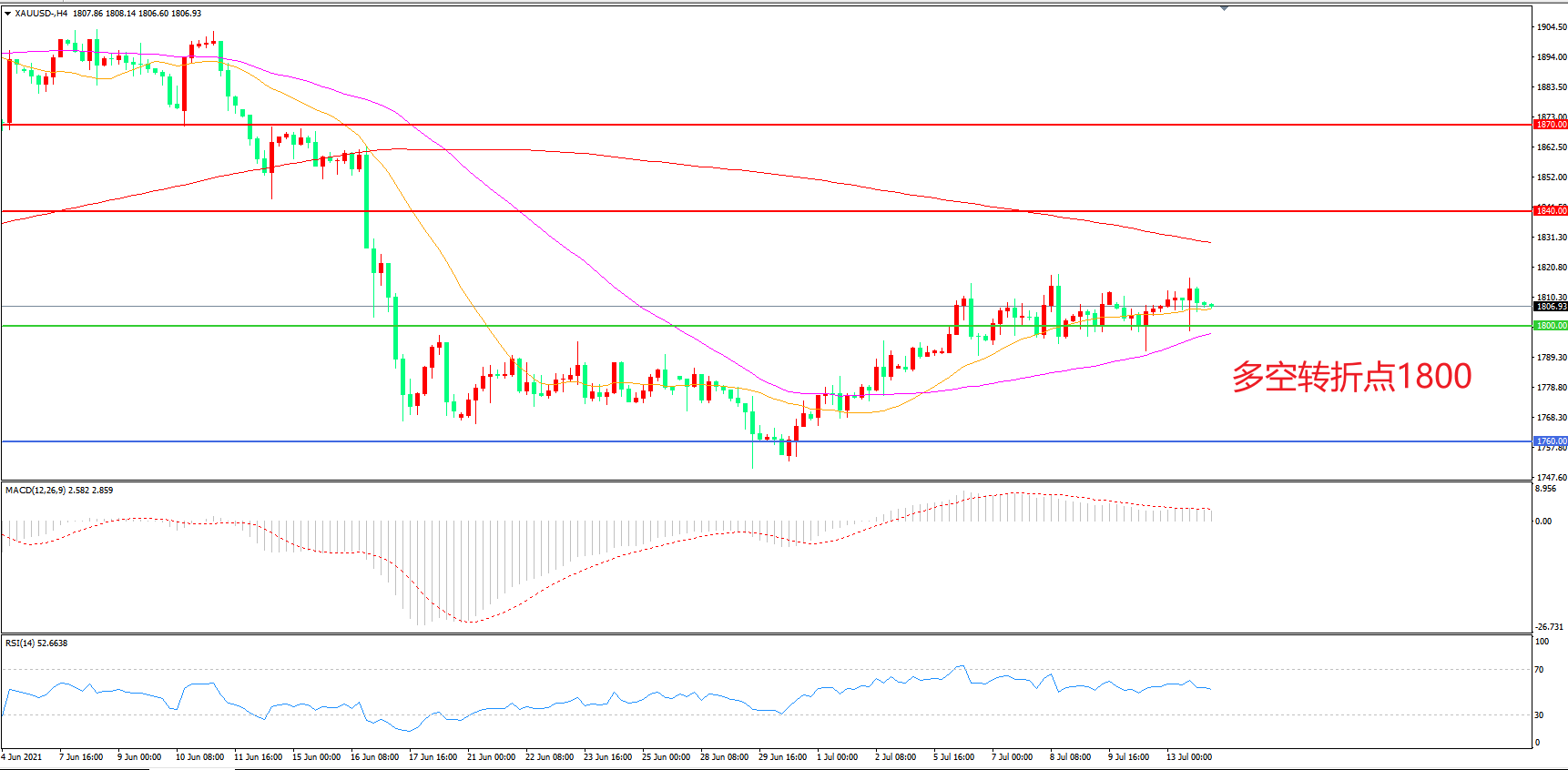 交易策略: 在1800.00之上看涨,目标1840.00 1870.00