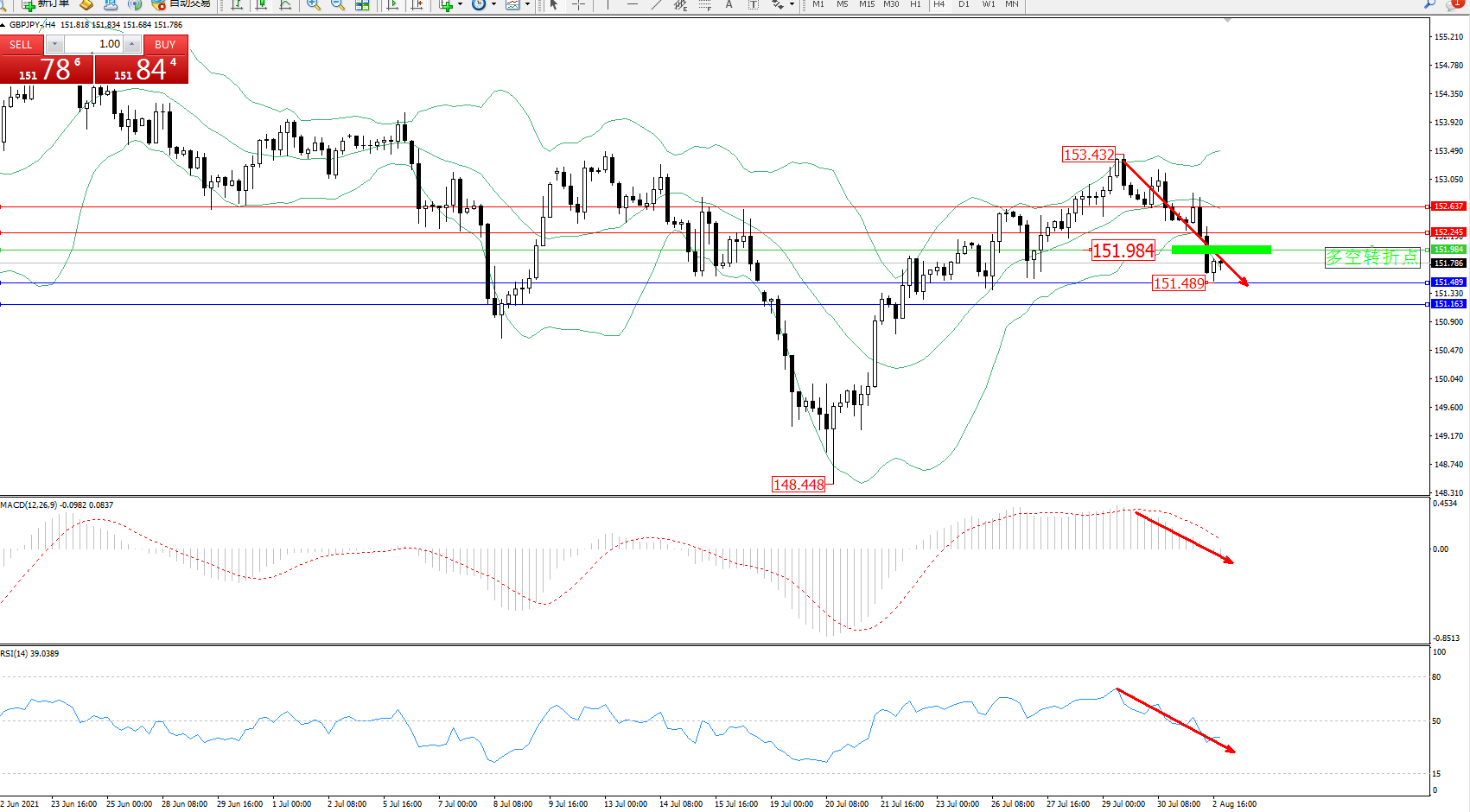 交易策略:151.984下方看跌,目标151.489、151.163