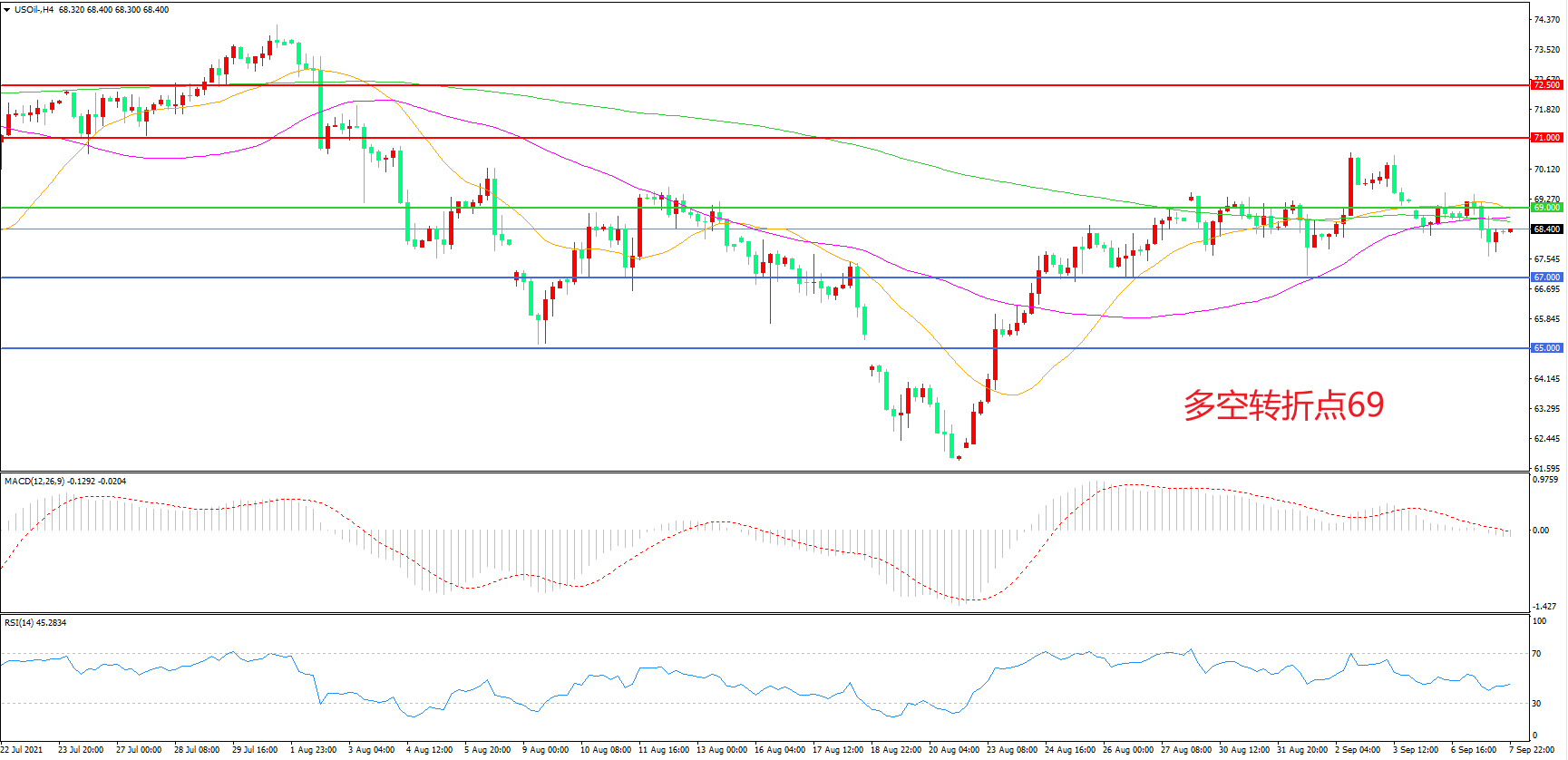 多空转折点:69.00