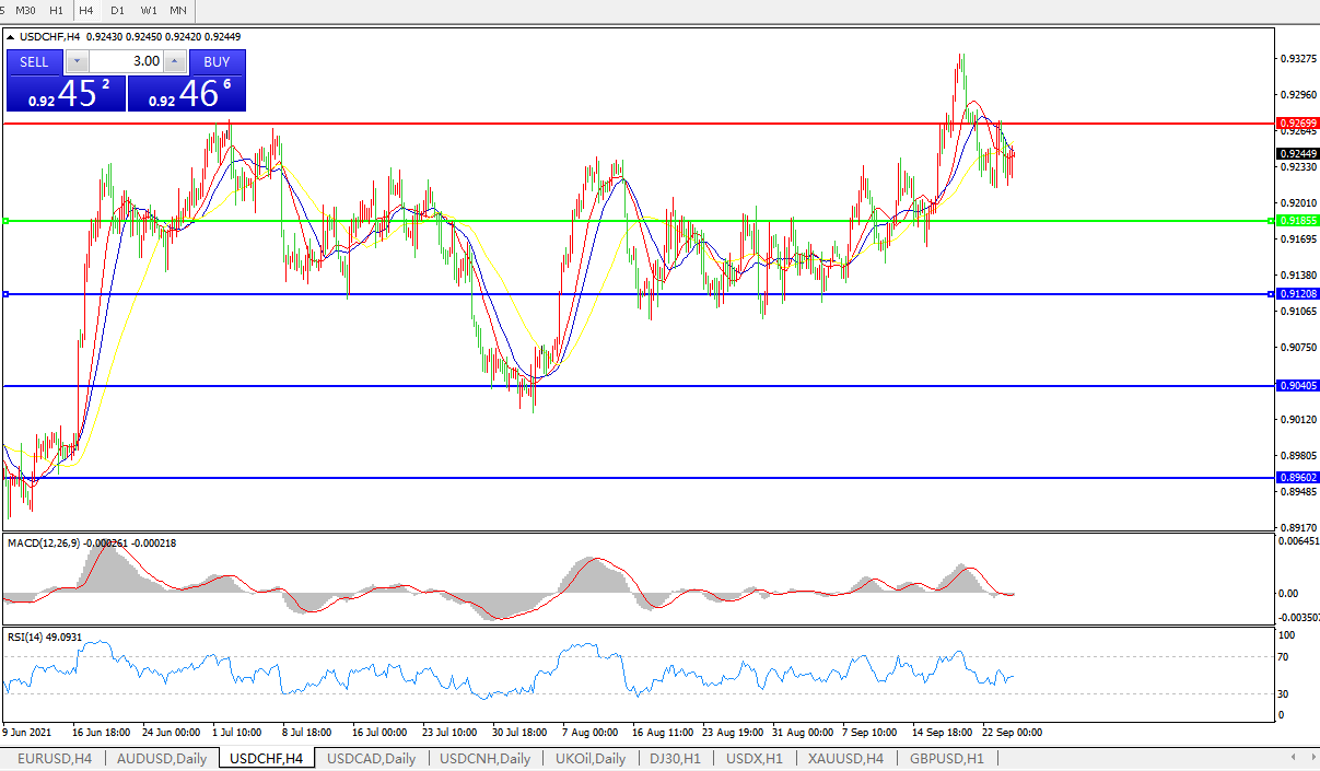 美元兑瑞郎USDCHF 4小时图: