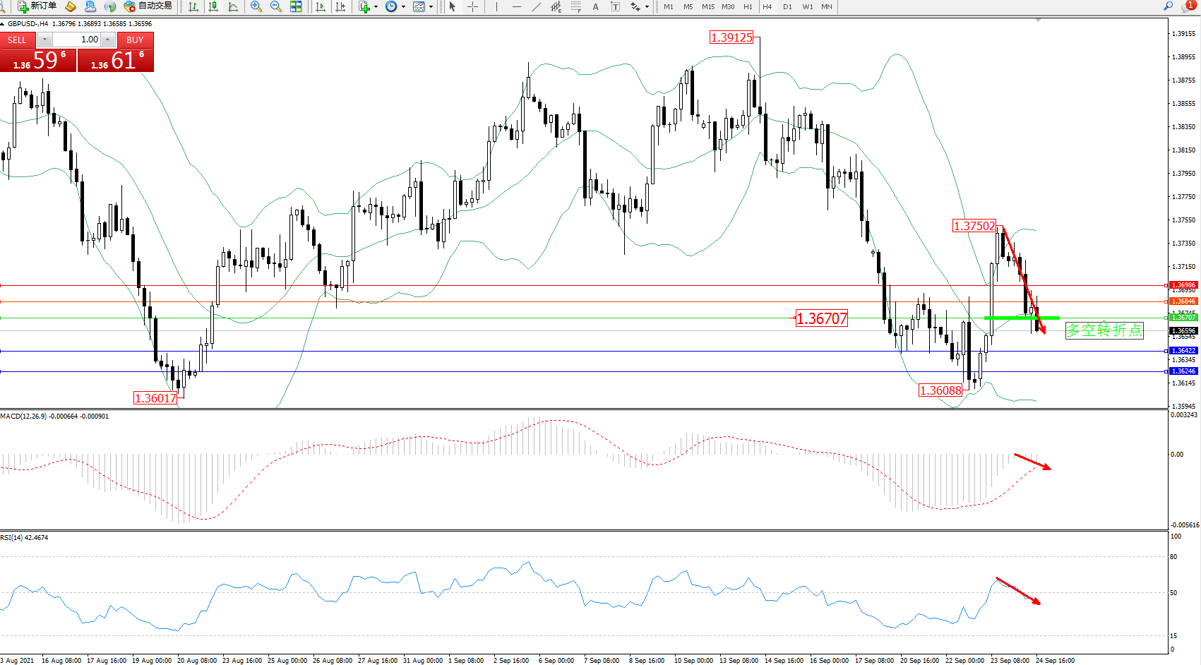交易策略:1.36707下方看跌,目标1.36422、1.36246