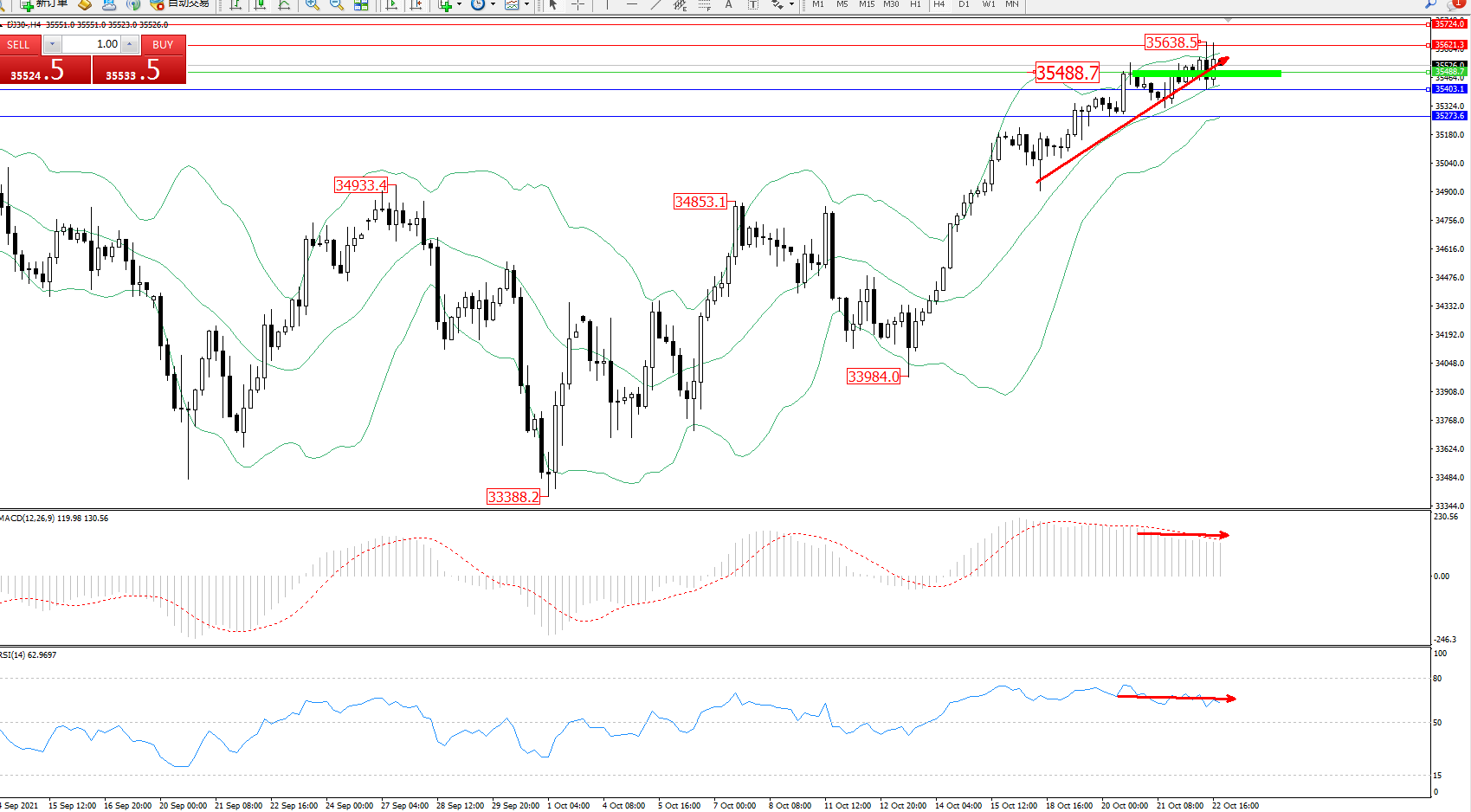 交易策略:35621、35724上方看涨,目标35403、35273