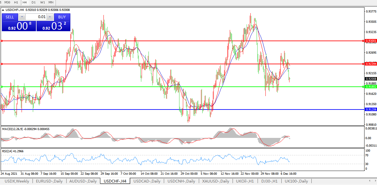 美元兑瑞郎USDCHF 4小时图: