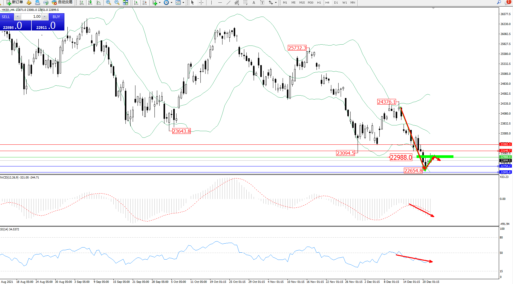 恒指HK50 ——4小时K线图显示: