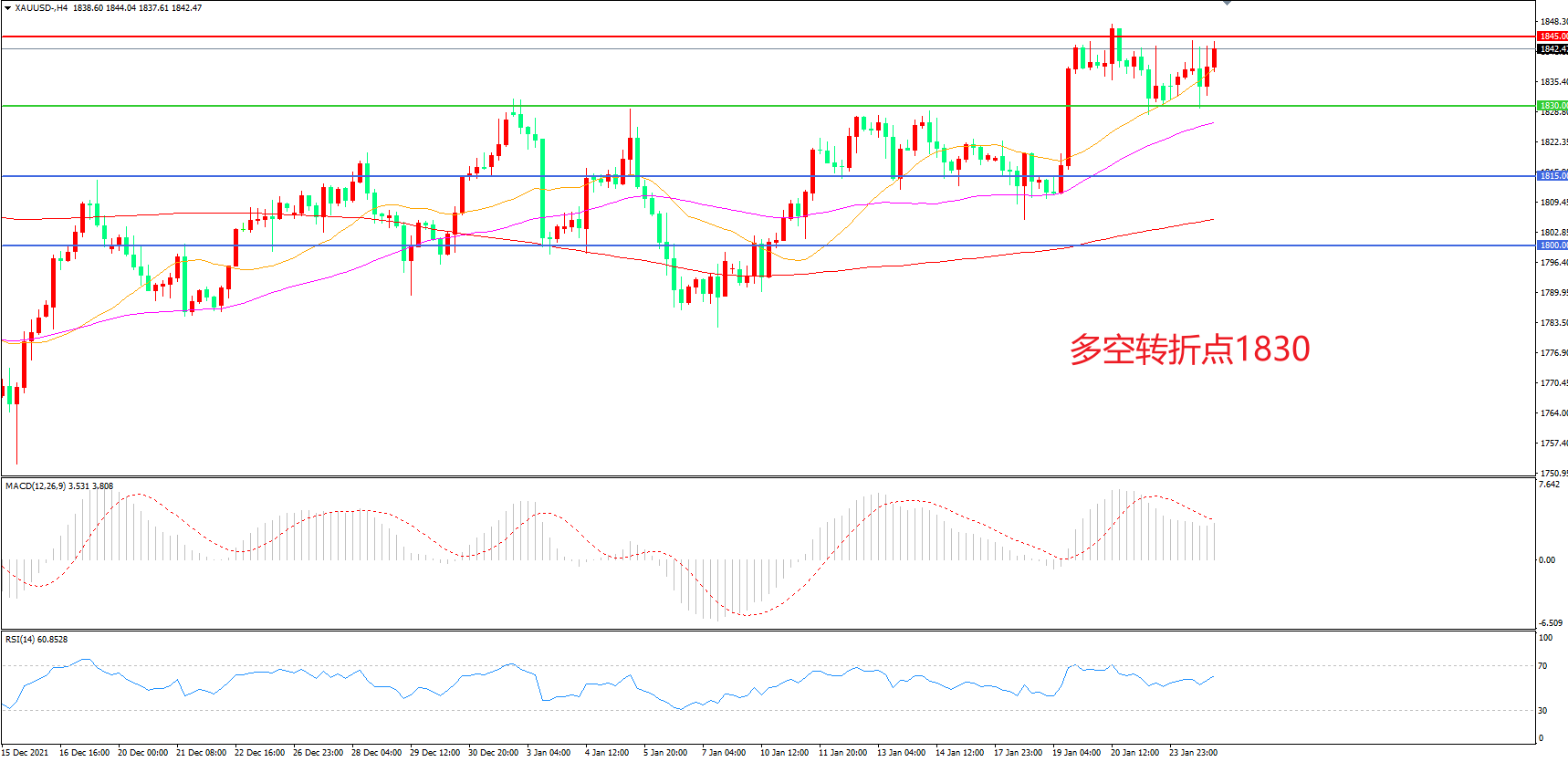 交易策略:在1830.00之上看涨,目标1845.00 1860.00