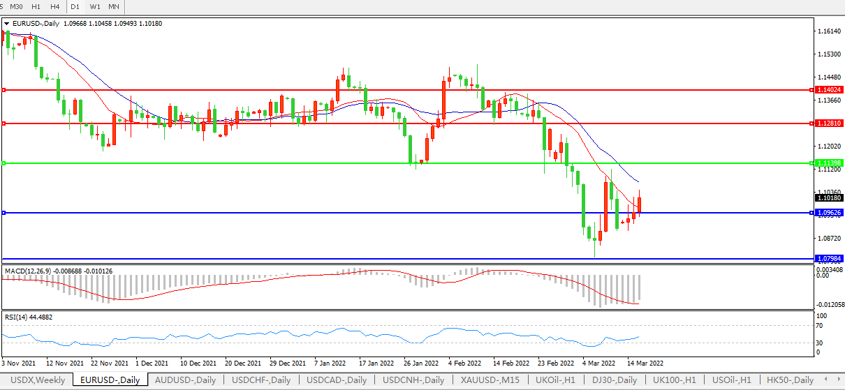 技术面简析:日图均线呈空头排列,汇价连续小幅走升,MACD运行于0轴下方但量能0轴下再度放量,RSI小幅走升,预计短期汇价大概率将在反弹后进一步下行。