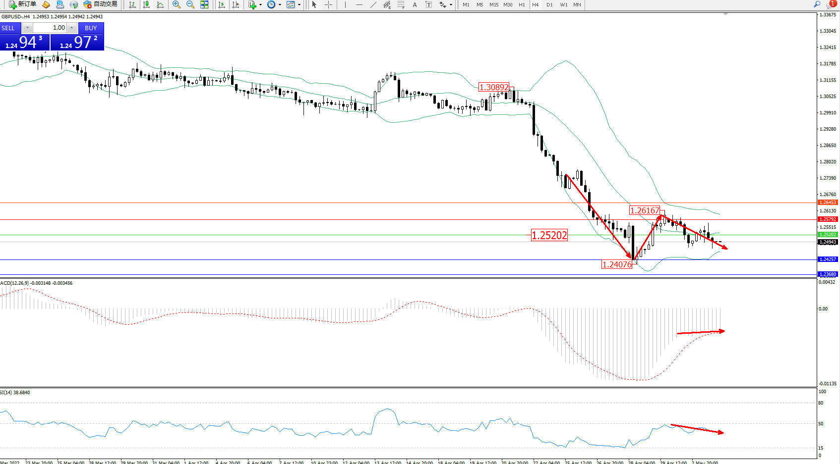 英镑美元GBPUSD ——4小时K线图显示:
