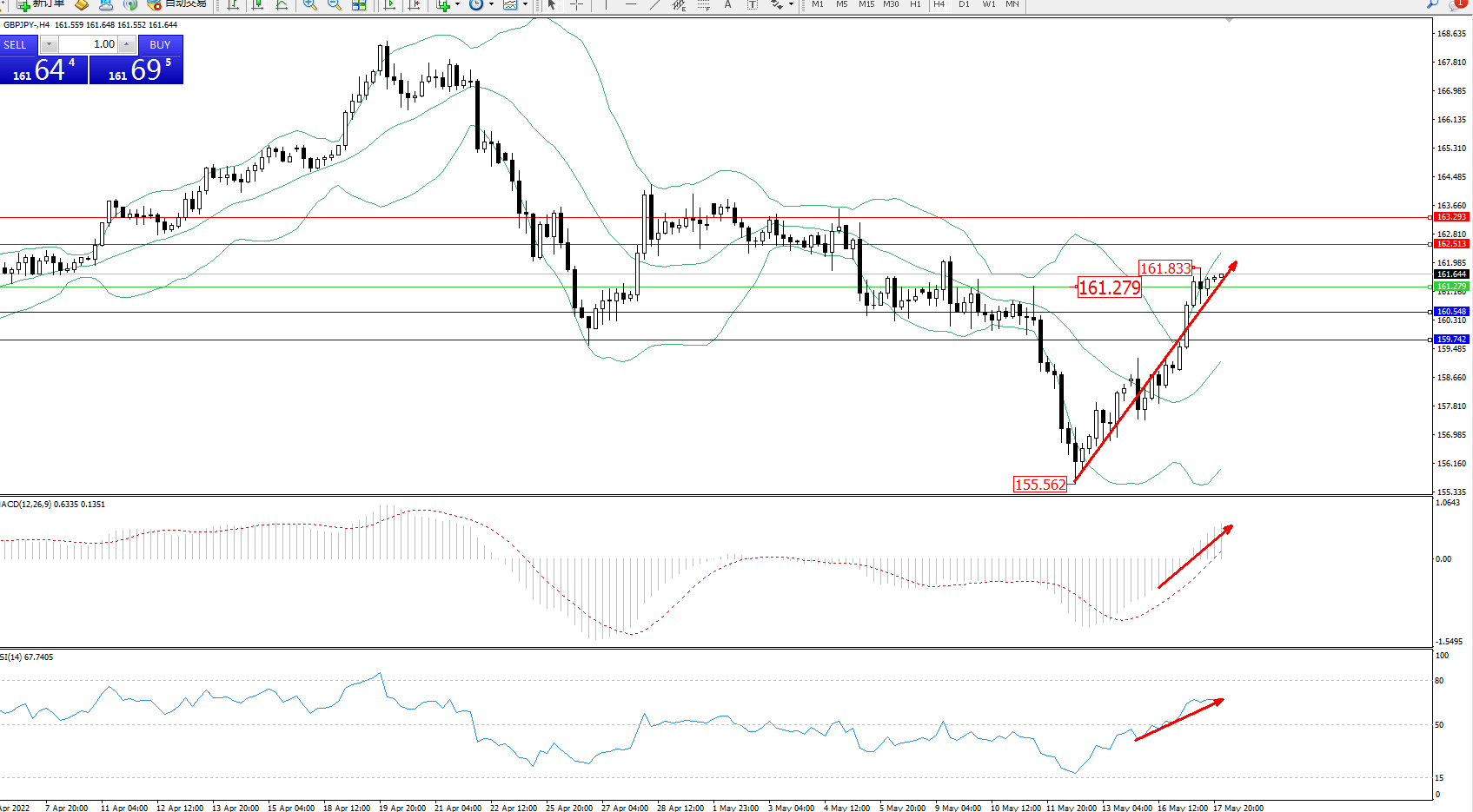 交易策略:161.279上方看涨,目标162.513、163.293
