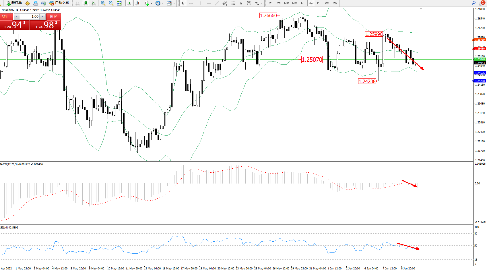 交易策略:1.25070下方看跌,目标1.24576、1.24288