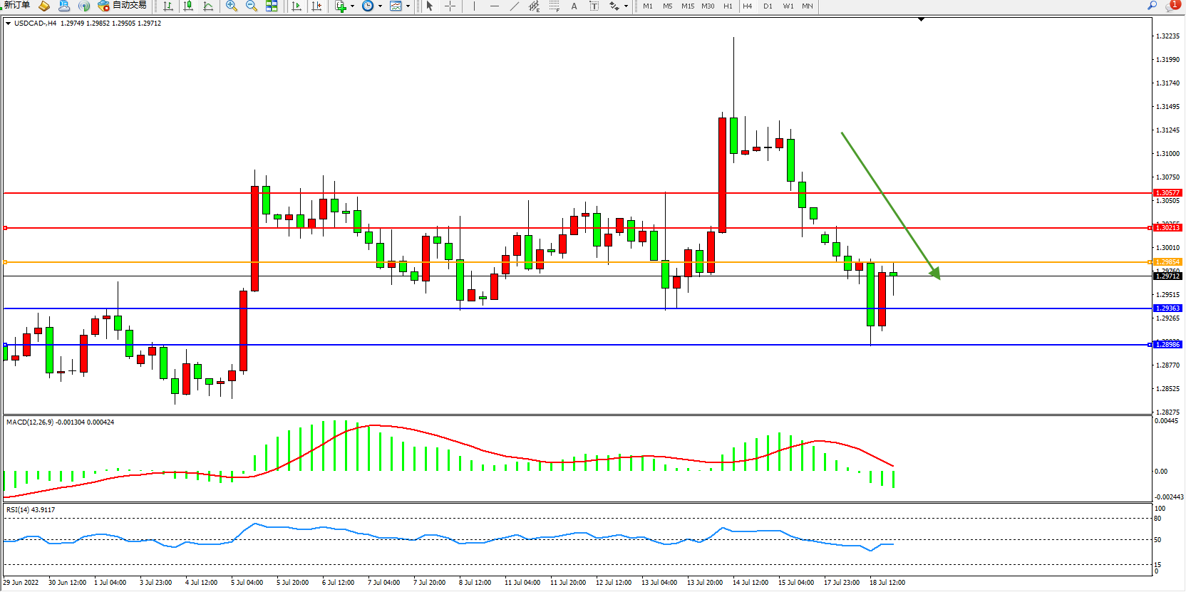 美元加元USDCAD——4小时K线图显示: