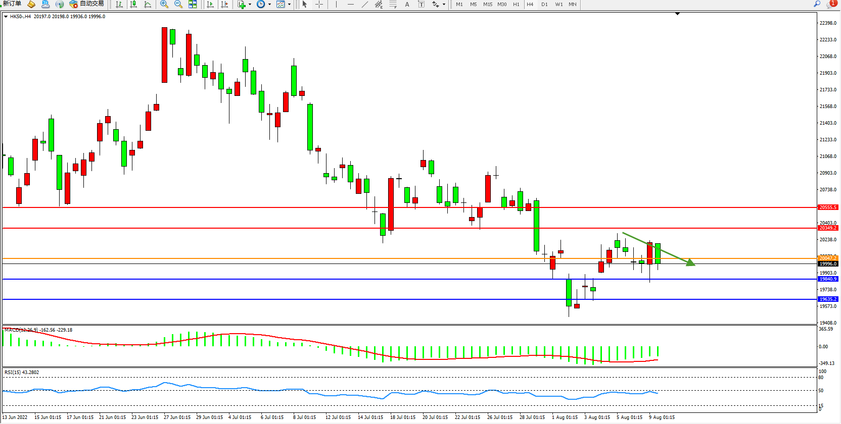 恒指HK50 4小时图