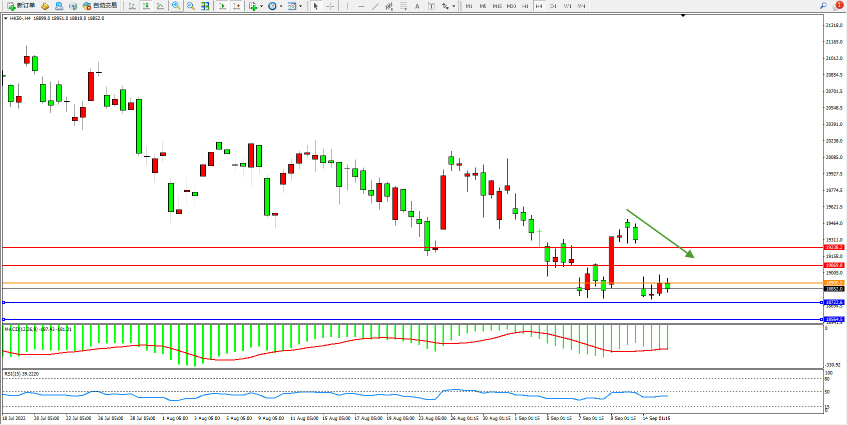 恒指HK50 4小时图