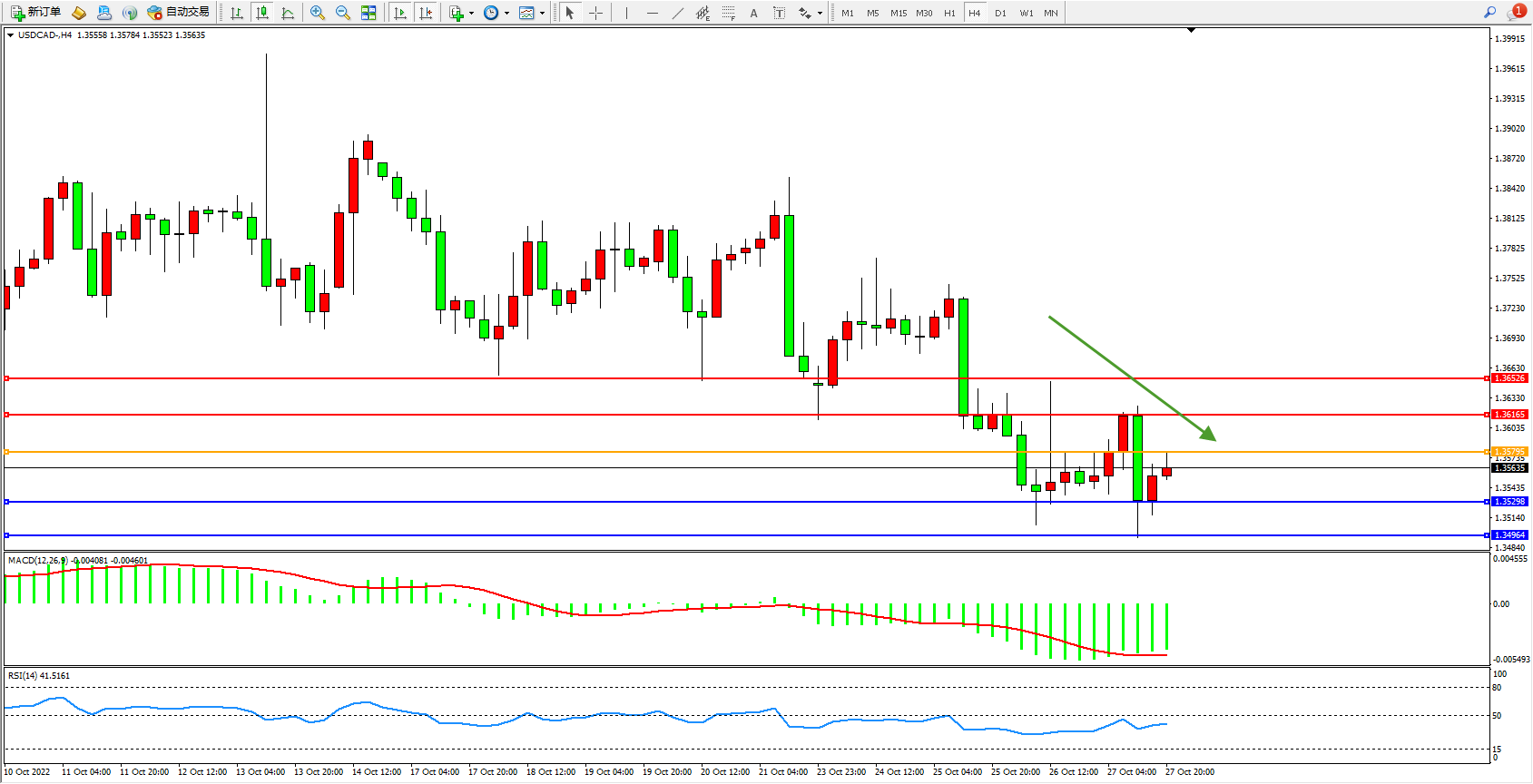 美元加元USDCAD——4小时K线图显示: