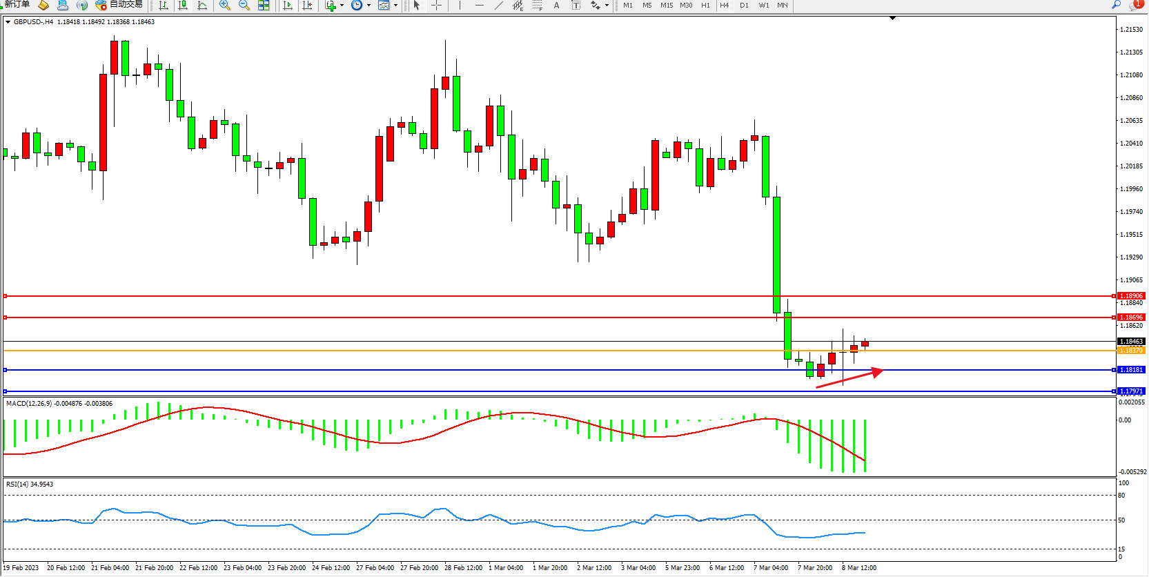 交易策略:1.18370上方看涨,目标1.18696  1.18906