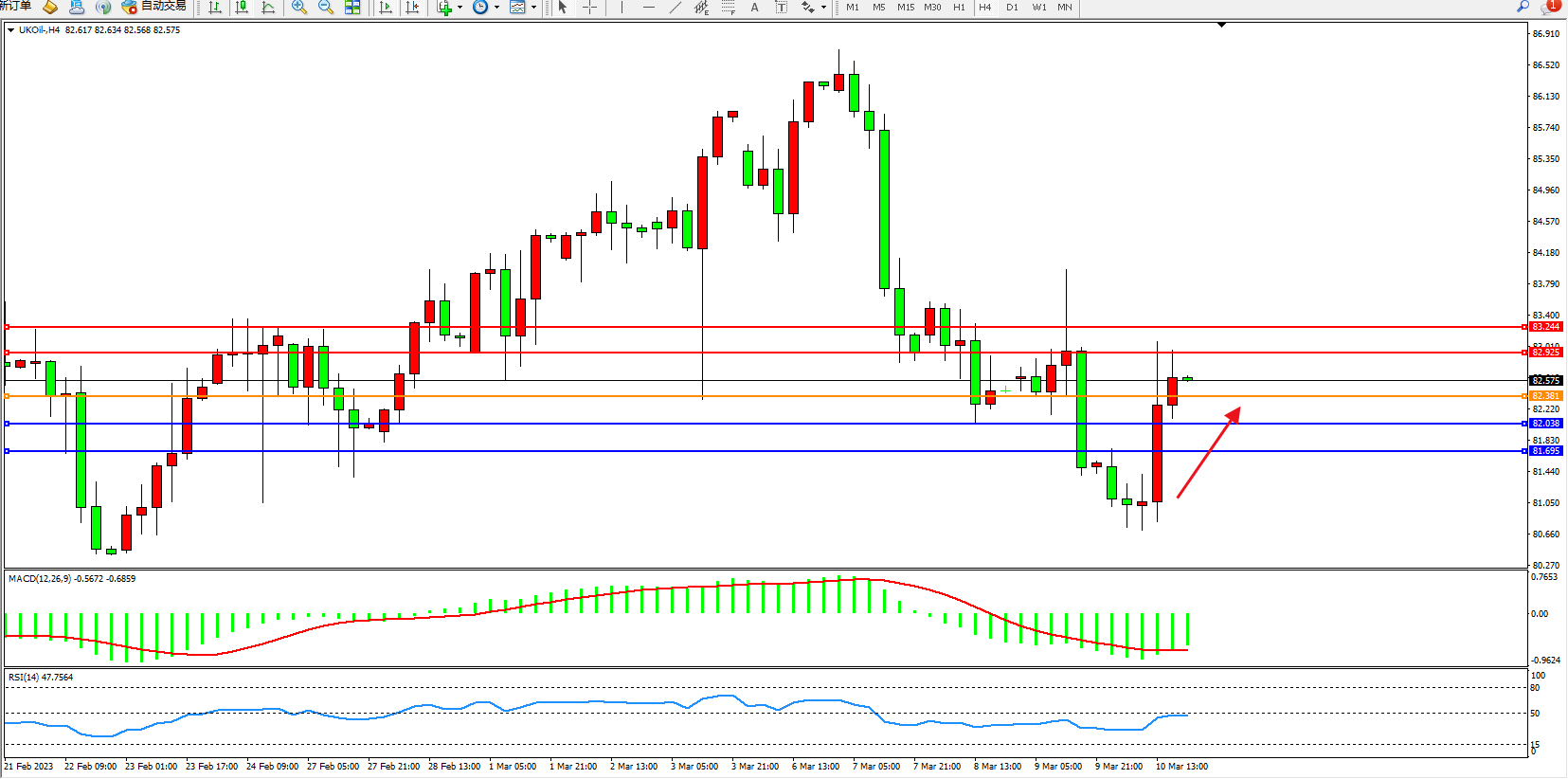 布油UKOil——4小时K线图显示: