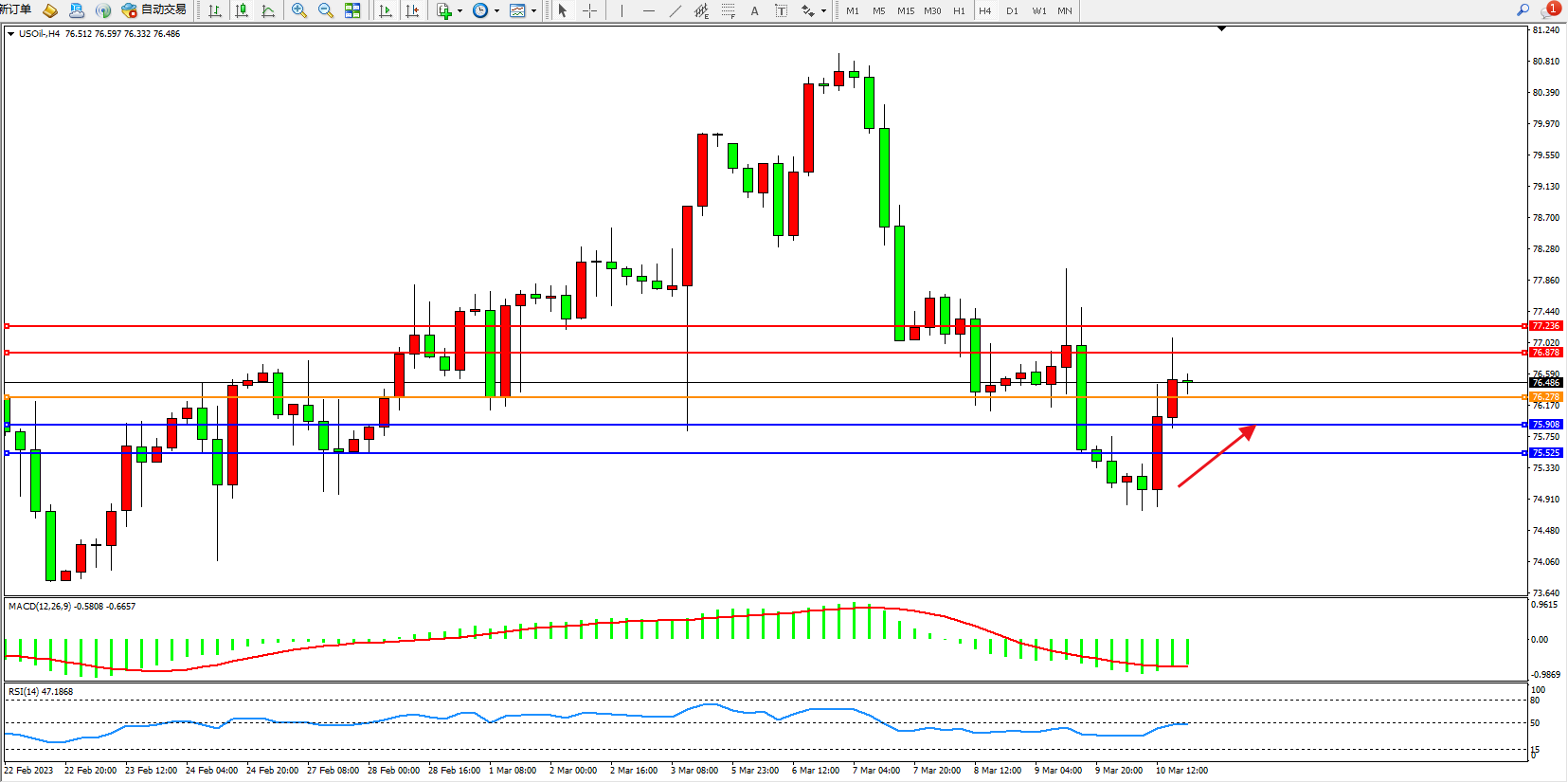 阻力位:76.878 77.236
