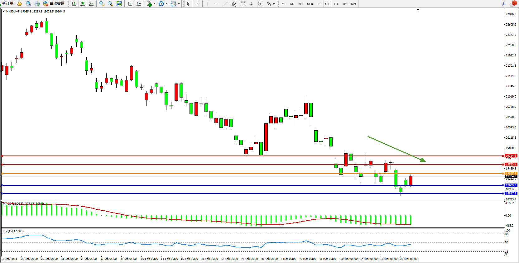 恒指HK50 4小时图