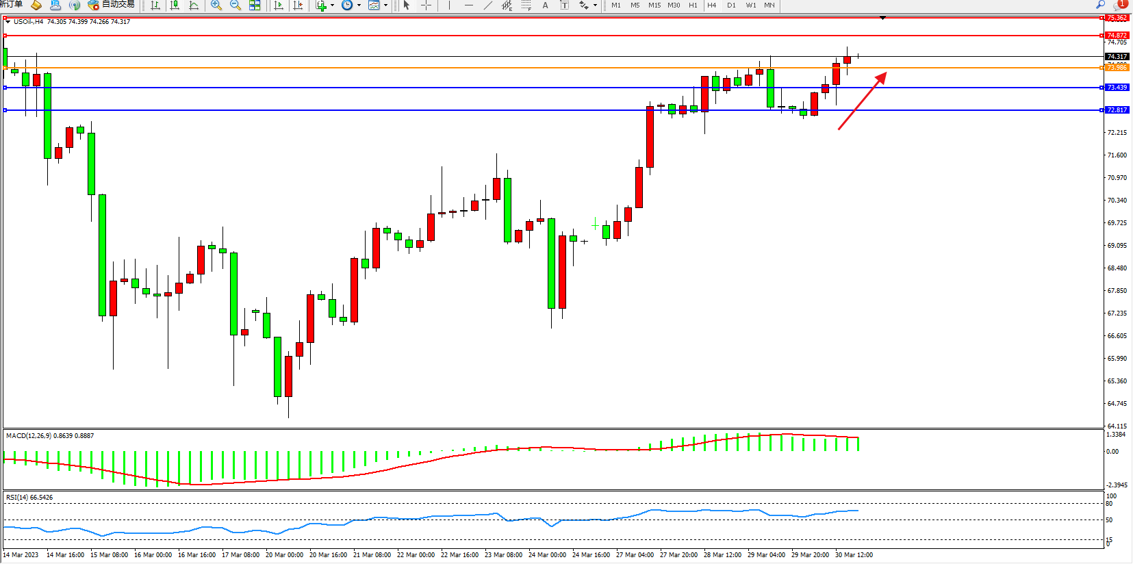 支撑位:73.439 72.817