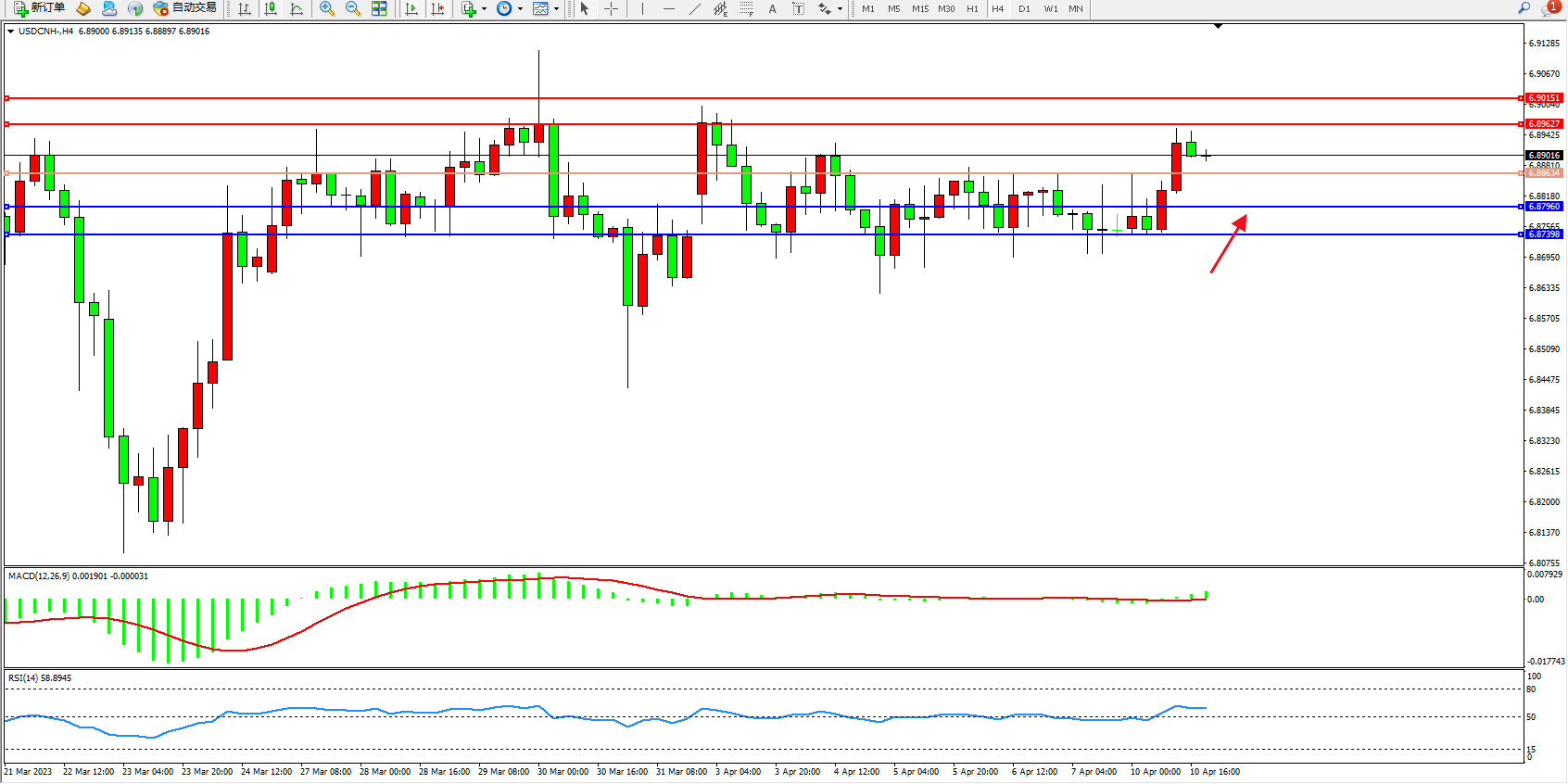 交易策略:6.88634上方看涨,目标6.89627 6.90151