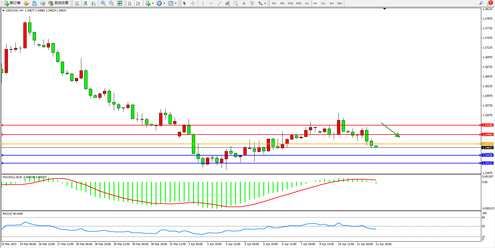 美元加元USDCAD——4小时K线图显示: