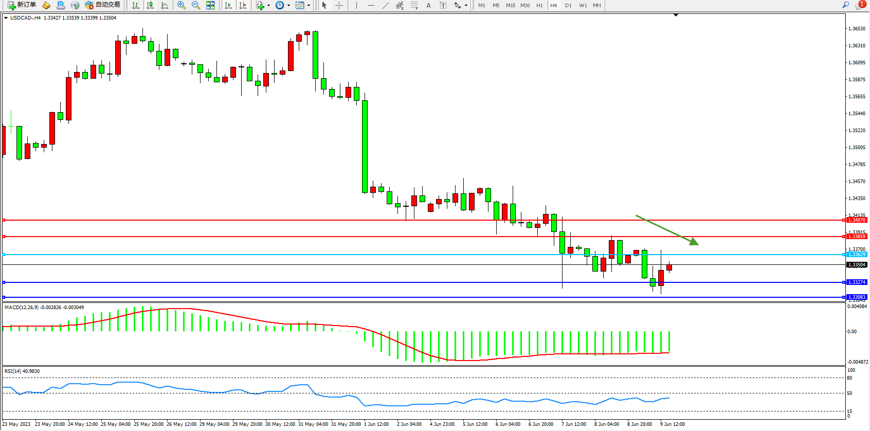 美元加元USDCAD——4小时K线图显示: