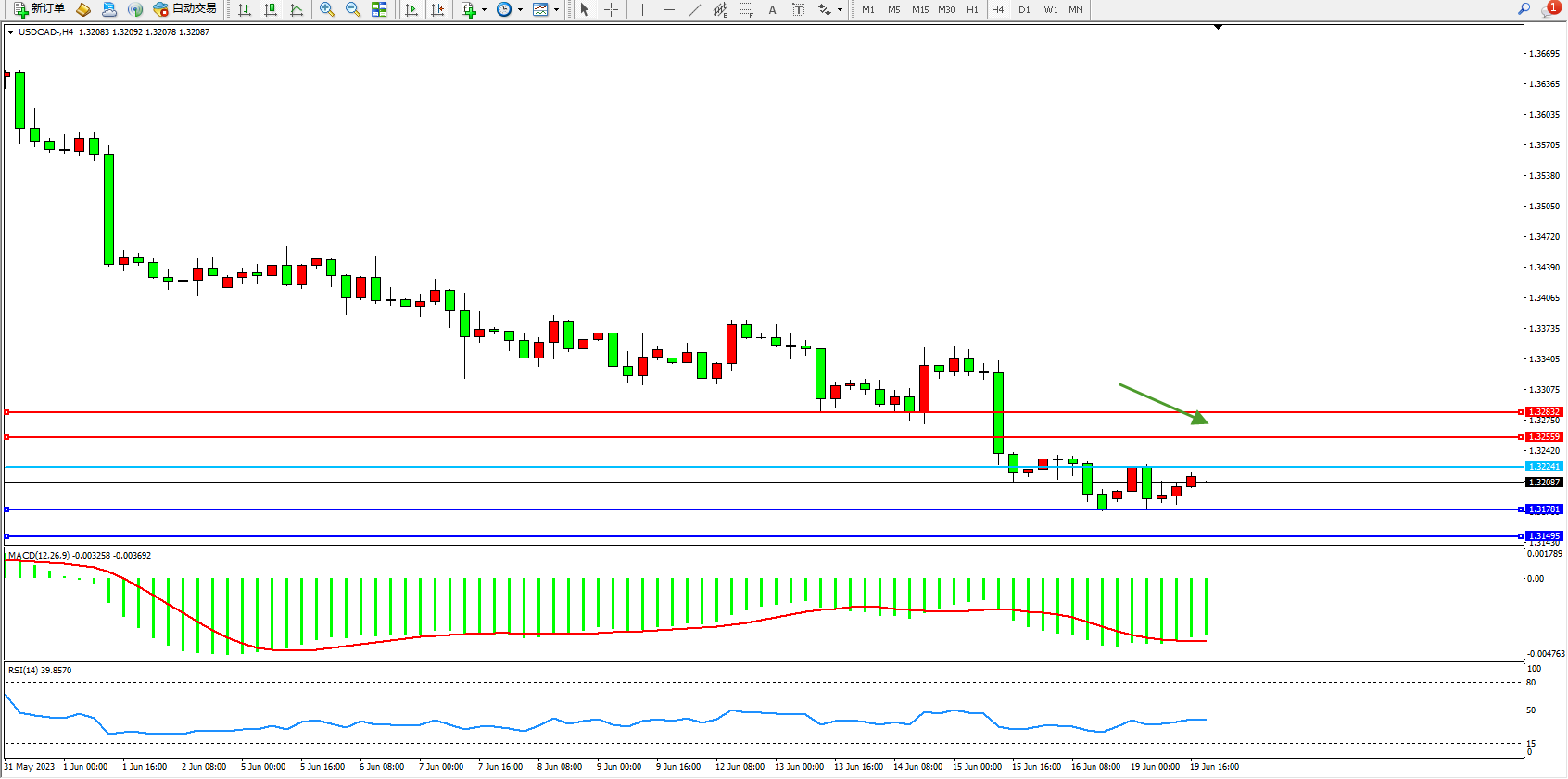 美元加元USDCAD——4小时K线图显示: