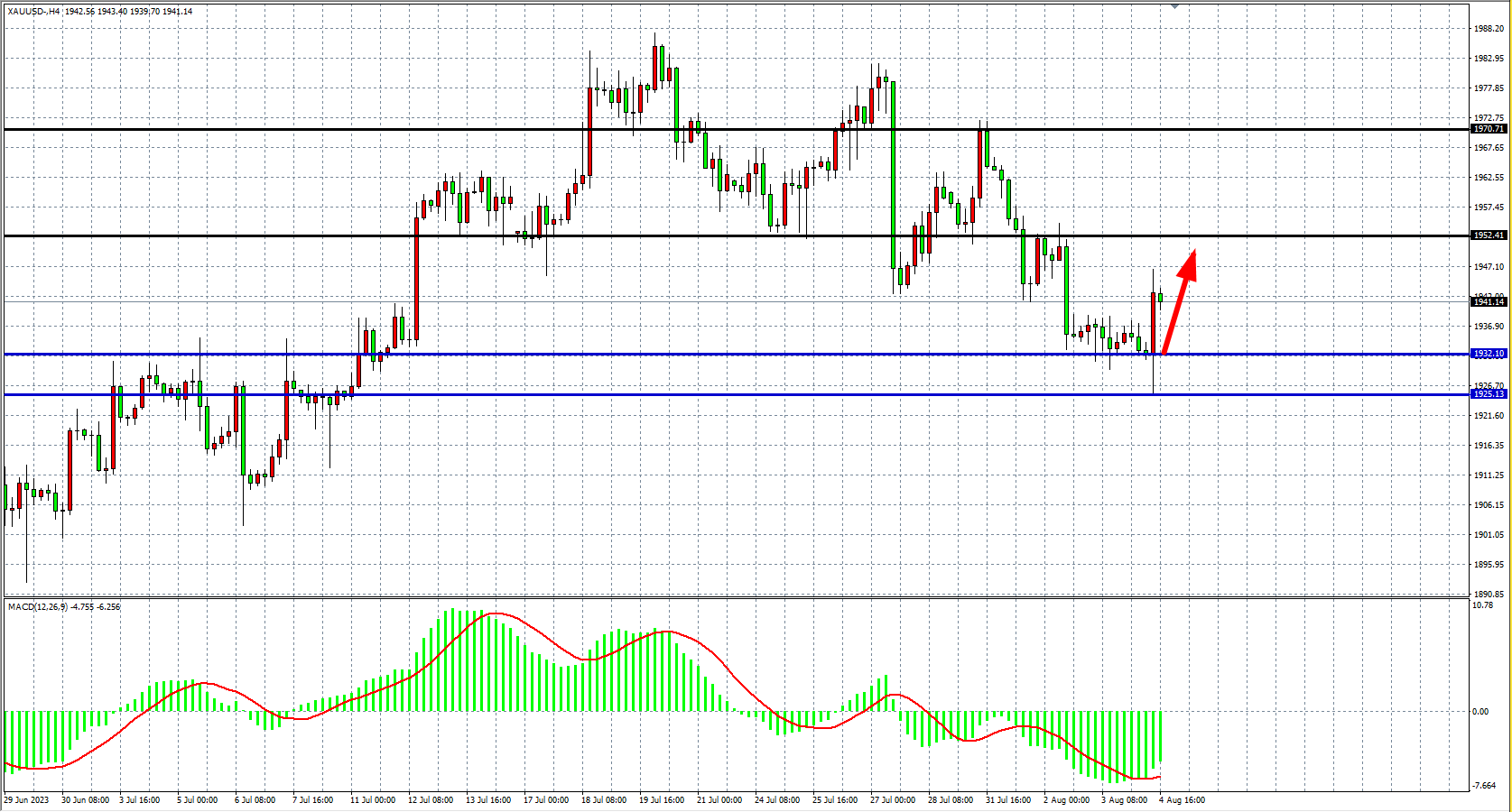 现货黄金XAUUS四小时