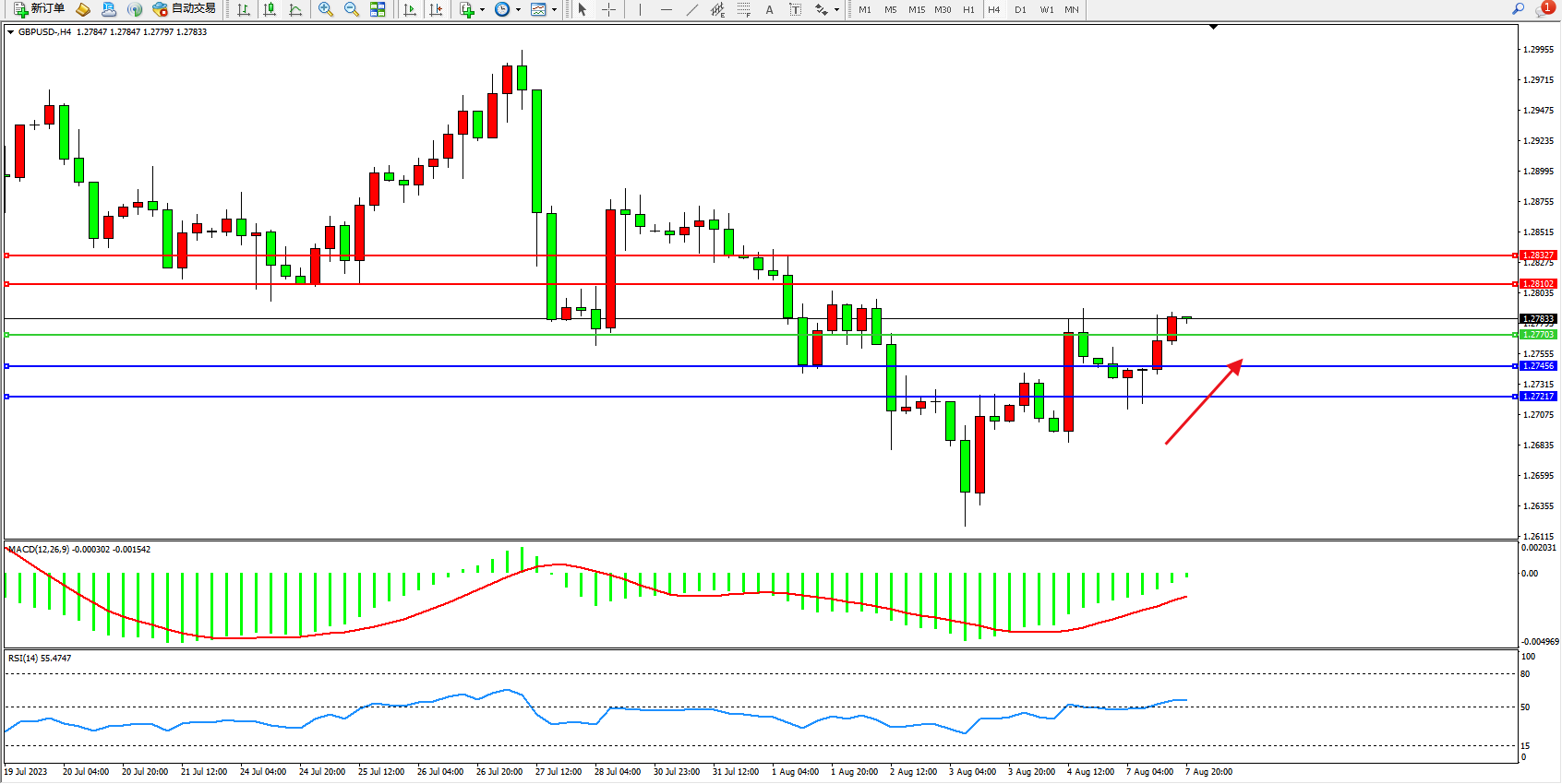 交易策略:1.27703上方看涨,目标1.28102 1.28327