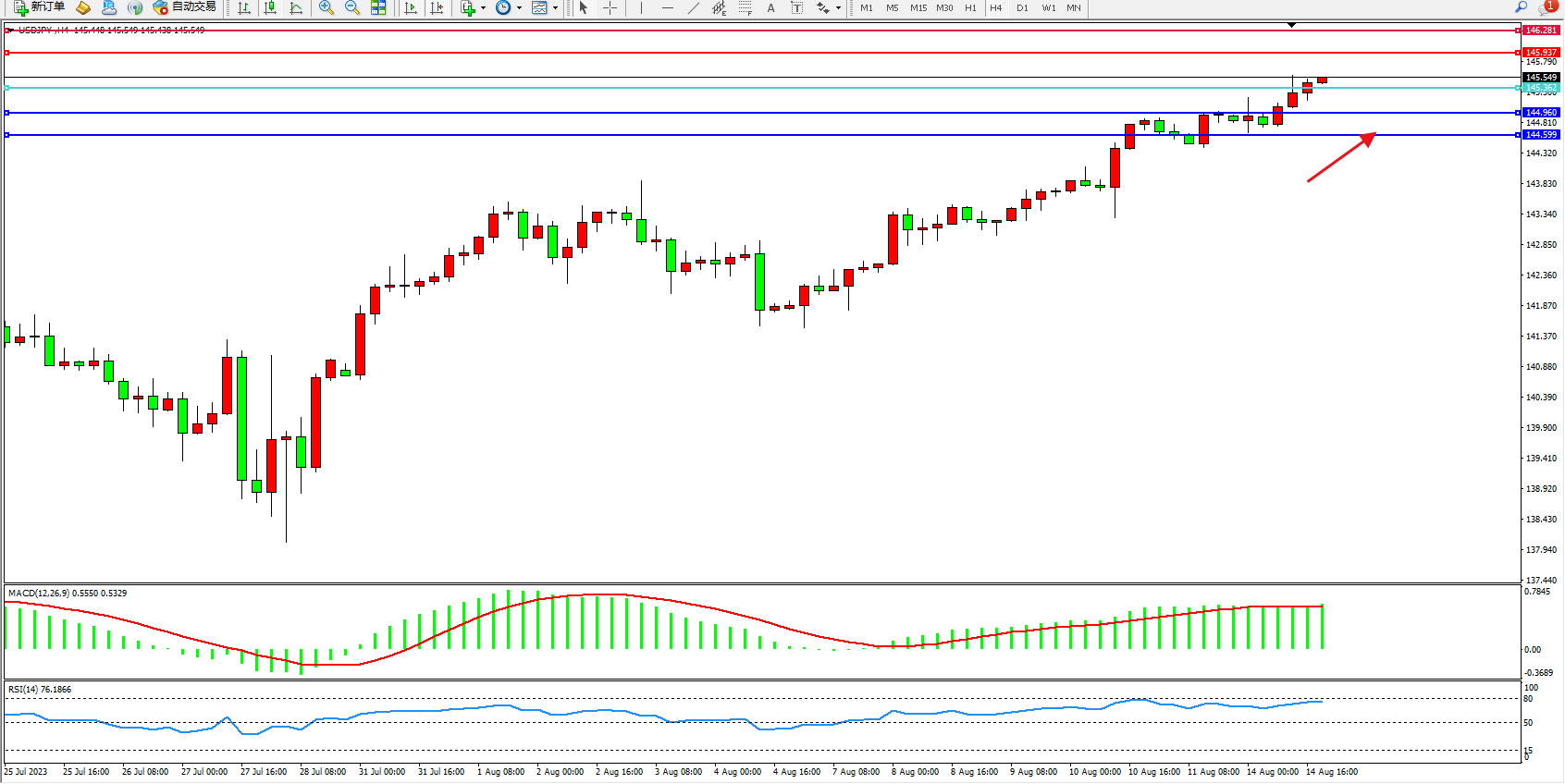 交易策略:145.362上方看涨,目标145.937 146.281