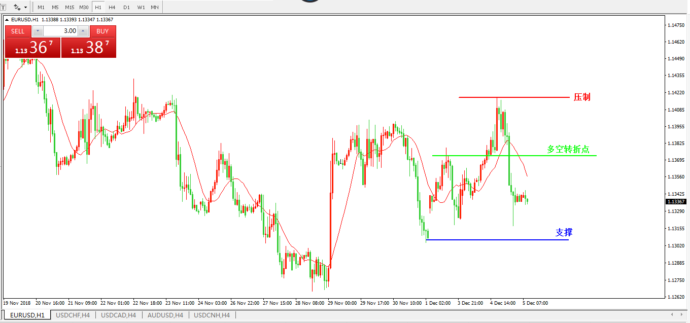 支撑位:1.1305 1.1270 1.1210