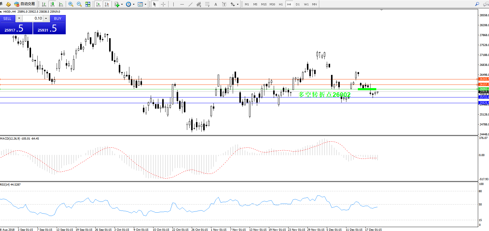 恒指HK50 ——4小时K线图显示: