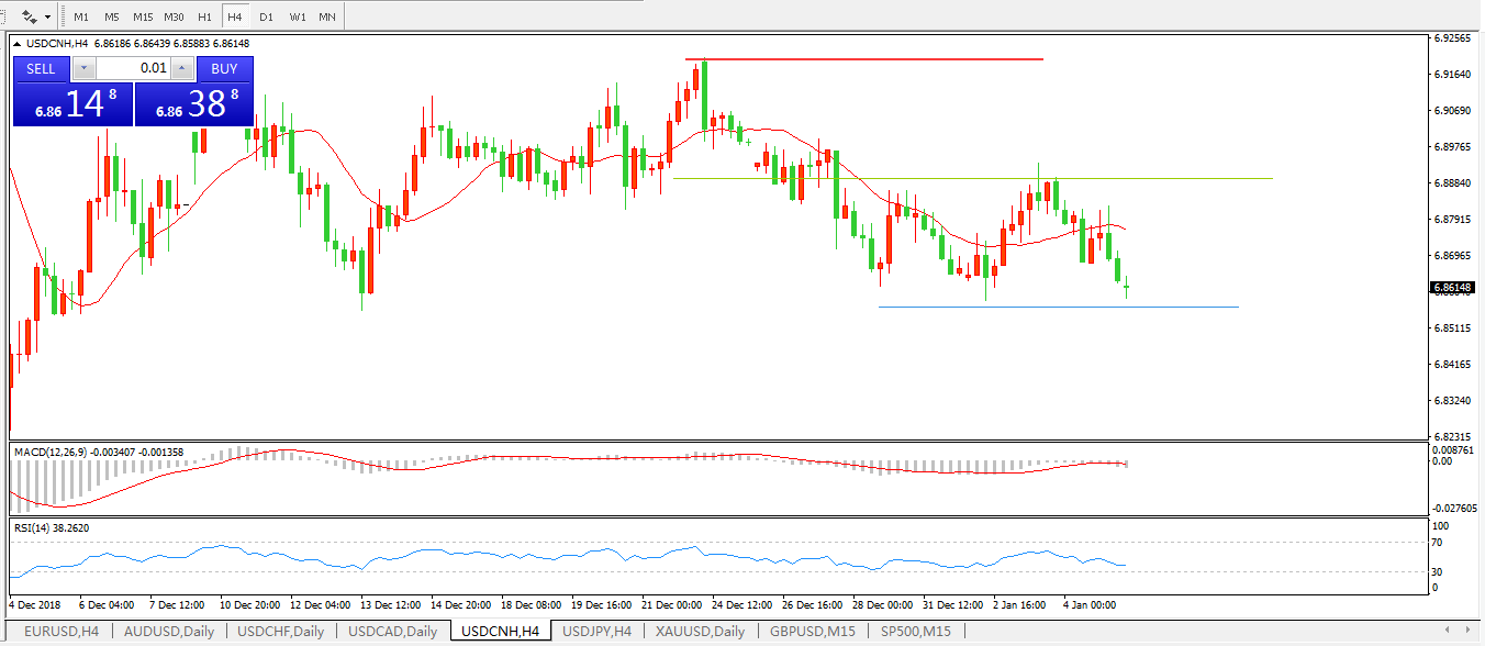 交易策略6.8905下,看跌,目标价位为6.8545,然后为 6.8242